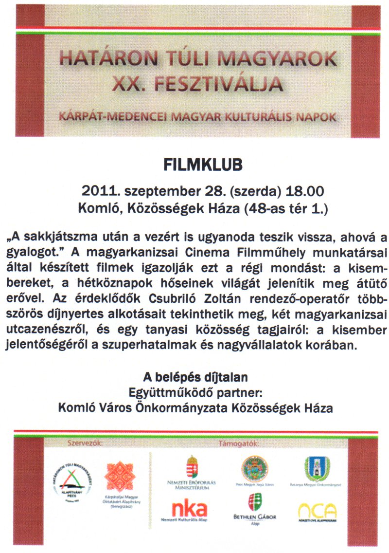 A hétköznapok hőseinek bemutatása a Cinema Filmműhely filmjeinek segítségével.