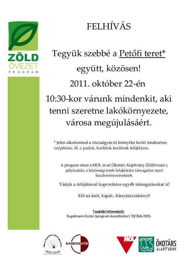 Tegyük szebbé a Petőfi teret együtt, közösen!