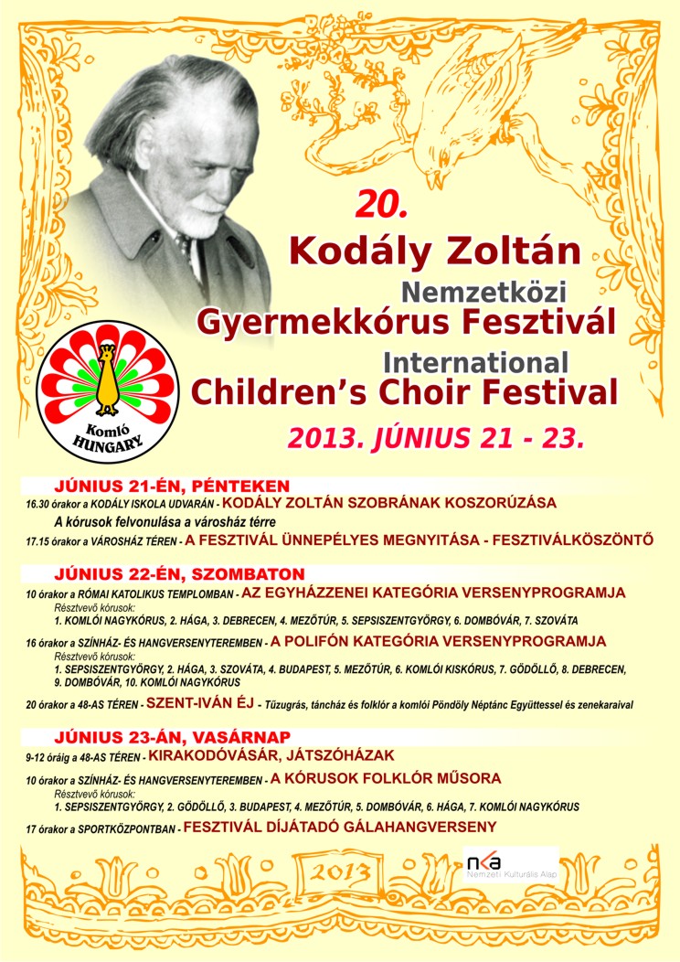 Résztvevő kórusok: Sepsiszentgyörgy, Hága, Budapest, Mezőtúr, Dombóvár, Gödöllő, Debrecen, komlói Kiskórus, komlói Nagykórus