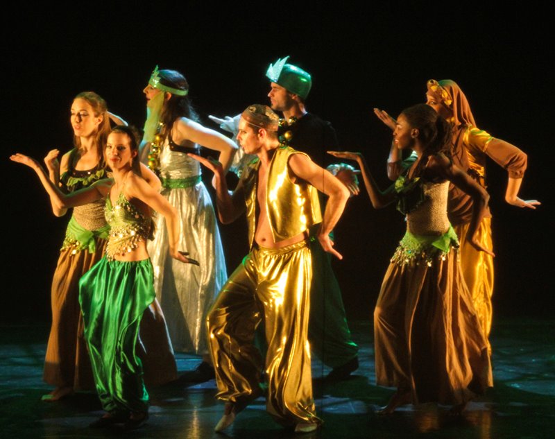 Az előadás öt mesén alapszik, ezek: Aladdin csodalámpája, Ali baba és a negyven rabló, Sahriár király és Seherezád, Az ébenfa ló, és A halász és a gonosz szellem. Az előadás a tánc és a film eszközeit ötvözve meséli el a történeteket Rimszkij-Korszakov Seherezádé című művére, és más mai orientális és etnozenékre, mint amilyen a Gettómilliomos c. film népszerű betétdala a "Jai ho".