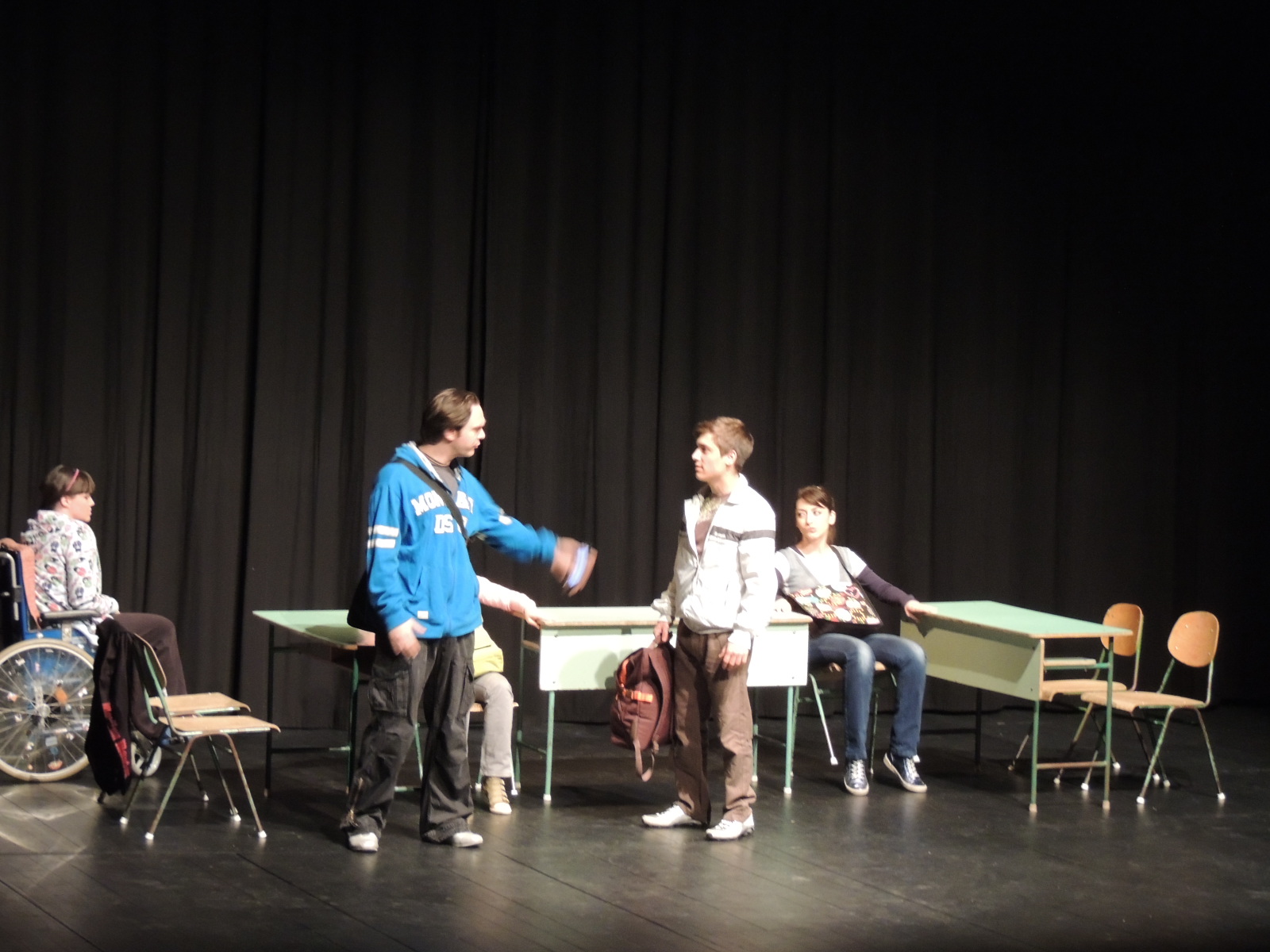 Ha a díszlet és jelmez mégis jelen van, azok funkcióikban sokkal több jelentést hordoznak. Ezek összessége áll össze egy nagy jelrendszerré, melyből kialakul az előadás jelentése, története, mondanivalója. A komlói Közösségek Háza évek óta nagy hangsúlyt fektet ilyen jellegű előadások bemutatására. Vendégünk volt: hamlet.ws (Krétakör); A sárkány, Kisded játékok, Plazma (KoMa Társulat); Klamm háborúja, A gyáva, Ady-Petőfi, (Nézőművészeti Kft.); Helló náci, Webáruház (Kolibri Színház); Az ezeregyéjszaka meséi (Bozsik Yvette Társulat)